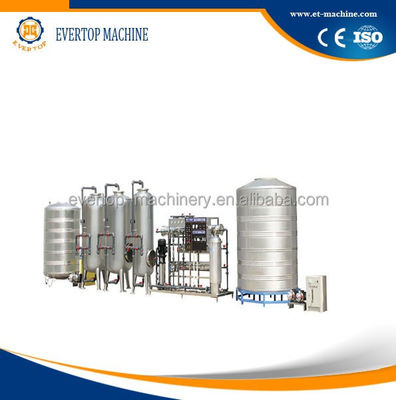 Water treatment system includes silica sand filter, active carbon filter, sodium ion exchanger, Ozone generator and UV Sterilizer, RO machine (If mineral water, use hollow fiber filter). All these machines made by stainless steel food stage.